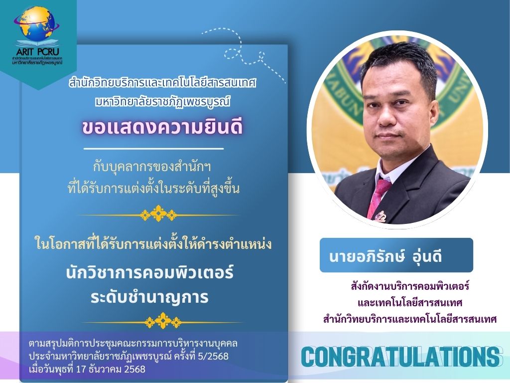 วันที่ 8 สิงหาคม 2562 สำนักวิทยบริการและเทคโนโลยีสารสนเทศ จัดการอบรมเชิงปฏิบัติการ "การสืบค้นสารสนเทศจากฐานข้อมูลออนไลน์"เวลา 08.30-12.00 น. ณ ห้องปฏิบัติการคอมพิวเตอร์ 103 อาคารเทคโนโลยีสารสนเทศ มหาวิทยาลัยราชภัฏเพชรบูรณ์ โดย ผศ.ดร.ประยูร ลิ้มสุข อธิการบดี ให้เกียรติเป็นประธานเปิดพิธี