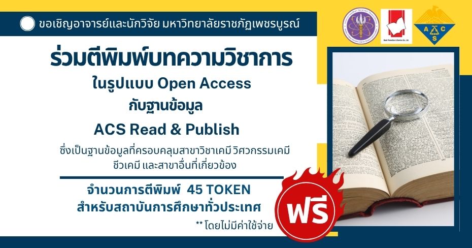 ขอเชิญคณาจารย์และนักวิจัยมหาวิทยาลัยราชภัฏเพชรบูรณ์ ร่วมตีพิมพ์บทความวิชาการในรูปแบบ Open Access กับฐานข้อมูล ACS Read & Publish โดยไม่มีค่าใช้จ่ายเพิ่มเติม