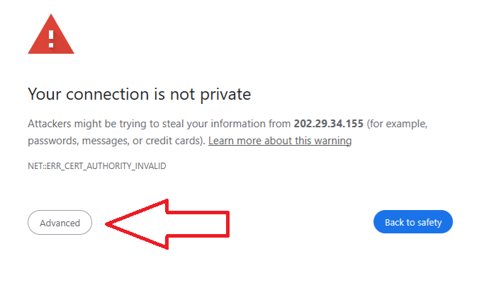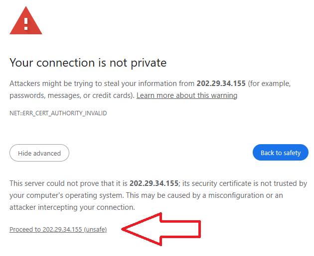 ดำเนินการคลิ๊กที่ Proceed to 202.29.34.155 ตามลูกศร