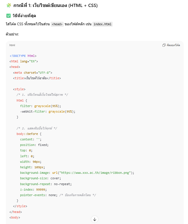 /* 1. โค้ดสำหรับทำให้เว็บเป็นสีเทา (Grayscale) */