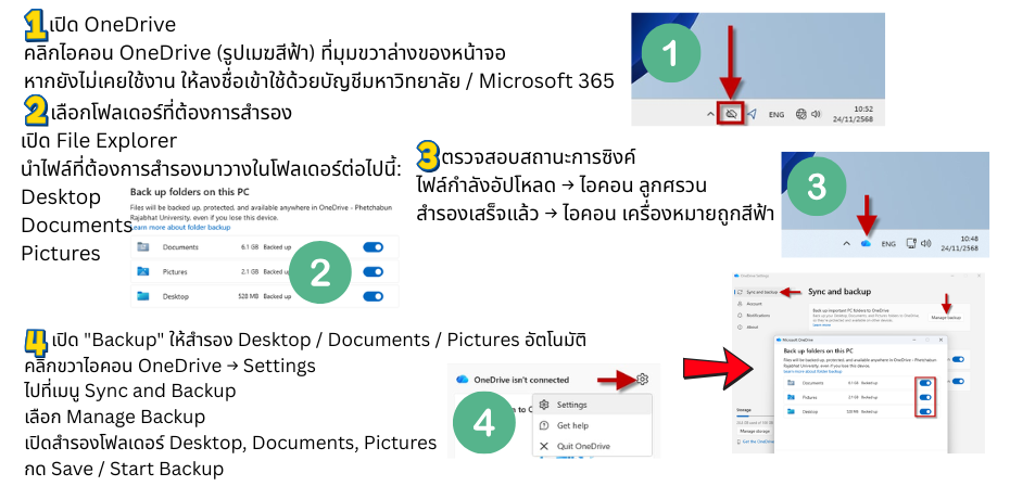 ไฟล์ที่อยู่ในโฟลเดอร์เหล่านี้จะถูก ซิงค์อัตโนมัติขึ้น OneDrive ทันที