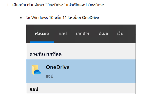 1.1Search หา OneDrive คลิ๊กไอคอน หรือ Seacrch OneDrive