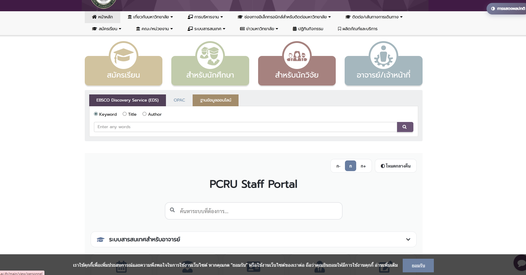 1️⃣ เข้าที่เว็ปมหาวิทยาลัย คลิ๊ก อาจารย์/เจ้าหน้า หรือ เข้าที่ PCRU Short URL