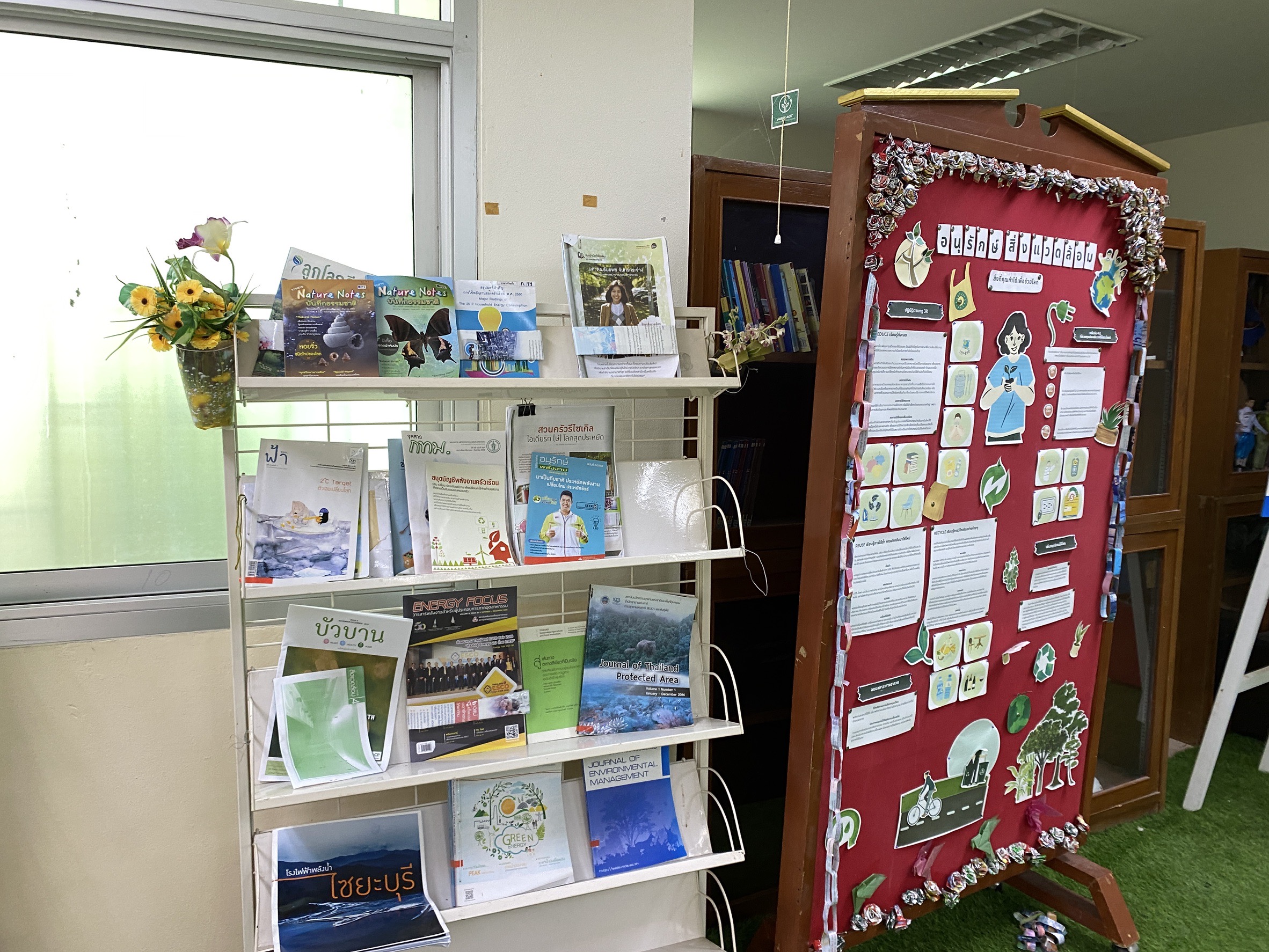 แวะมาเช็คอินที่บอร์ดความรู้ได้ทั่วห้องสมุด พบกับสาระน่ารู้ที่เข้าใจง่ายและนำไปใช้ได้จริง พร้อมต้อนรับนักอ่านหัวใจสีเขียวทุกคน มาเรียนรู้วิธีดูแลโลกไปพร้อมๆ กับการอ่านหนังสือที่ห้องสมุด