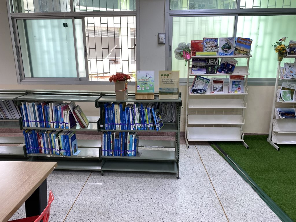 แวะมาเติมความรู้รักษ์โลกได้ที่ห้องวารสาร ชั้น 1 บรรยากาศน่านั่ง แอร์เย็นสบาย พร้อมมุมพักผ่อนที่ผสมผสานดีไซน์รักษ์โลกเข้ากับสาระความรู้ จะมานั่งทำงานกลุ่มหรือหาข้อมูลทำรายงานด้านพลังงานก็มี