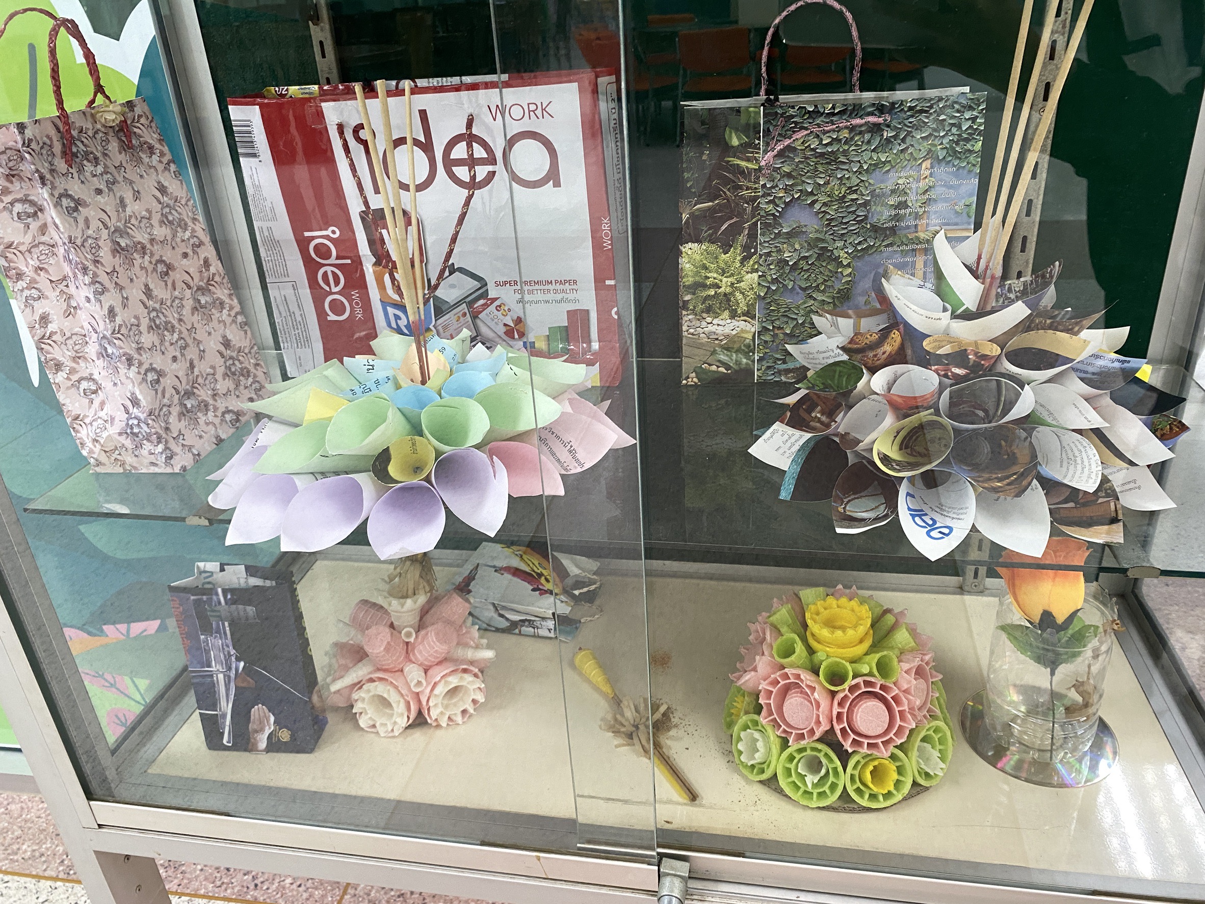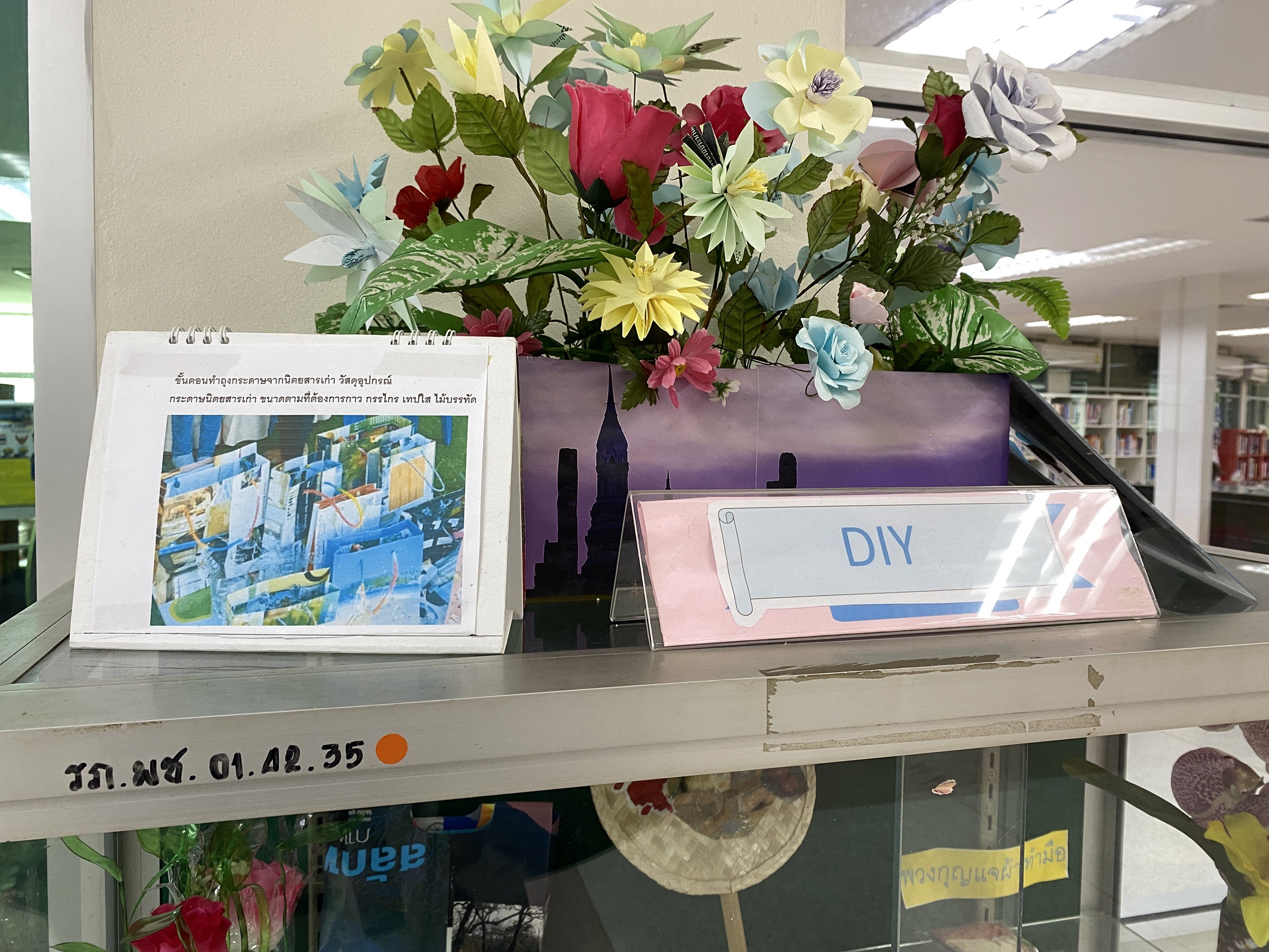 รู้มั้ยว่า… นิตยสารเล่มเก่าที่เราอ่านจบแล้วแปลงร่างเป็นถุงกระดาษแสนสวยได้นะ? แวะมาเติมแรงบันดาลใจที่มุม DIY ของห้องสมุดสีเขียว พบกับผลงานประดิษฐ์จากฝีมือบรรณารักษ์และนักเรียน ที่ช่วยกันเปลี่ยน “ของเหลือใช้” ให้กลายเป็น “ของน่าใช้”