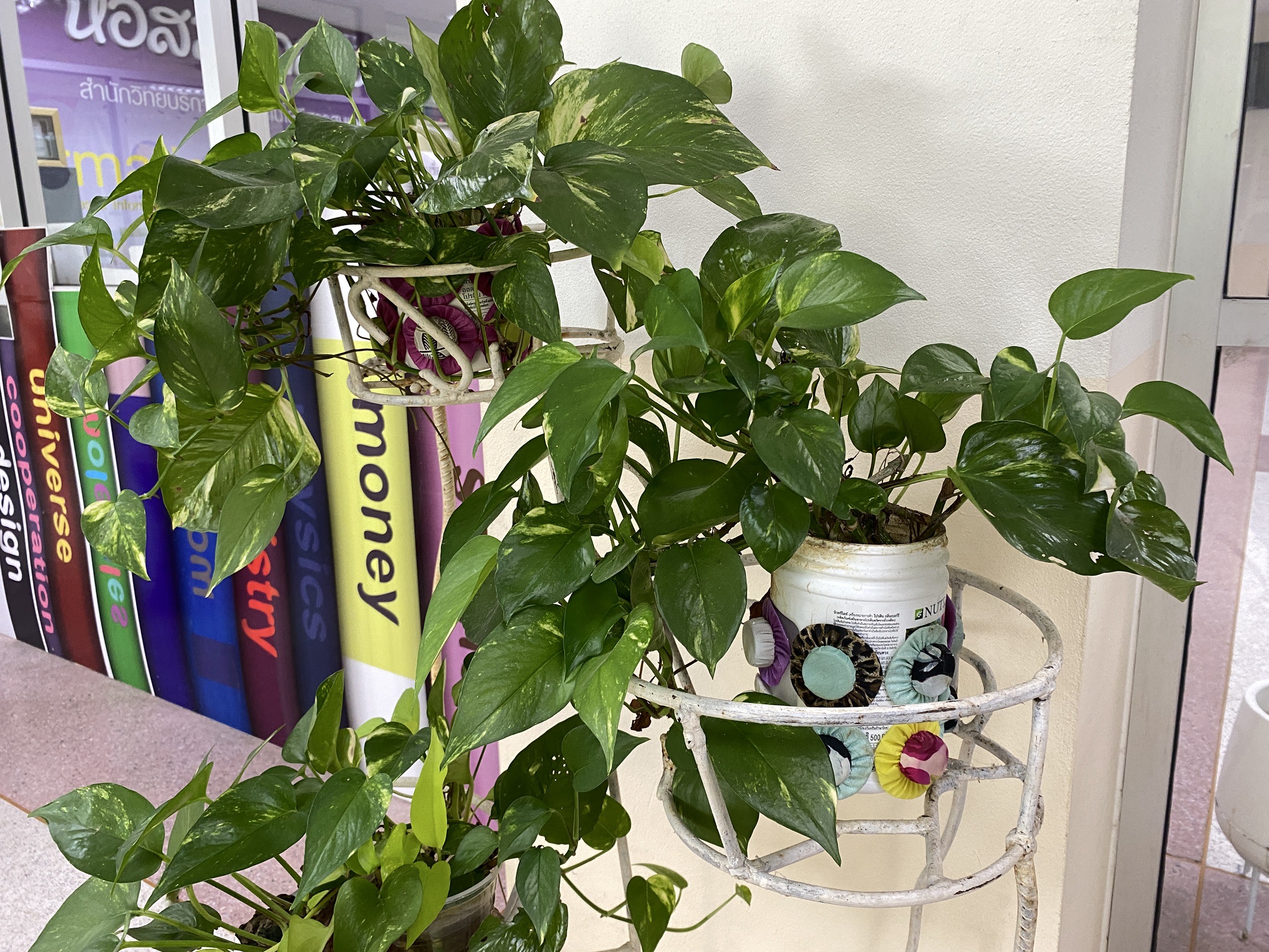 • คัดเลือกพันธุ์ไม้ที่ช่วยฟอกอากาศและดูแลรักษาง่าย เช่น พลูด่าง และไม้เลื้อยต่างๆ